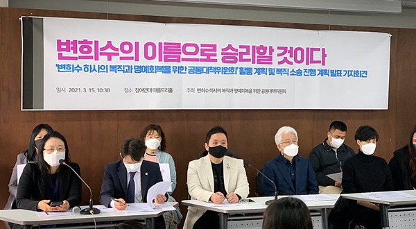 공대위는 "고인의 승소와 복직을 목표로 차별과 혐오에 반대하는 시민의 연대를 끈끈하게 조직하고, 투쟁의 장을 열어나갈 것"이라며 "국가와 시민을 위해 헌신했고, 헌신하고자 했던 군인 변희수의 영전에 국방부와 육군의 통렬한 사죄를 반드시 받아낼 것"이라고 덧붙였다.