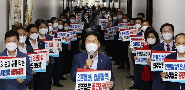 그러나 국민의힘과 윤석열 후보는 지난해 징벌적 손해배상제를 골자로 하는 언론중재법 개정안을 '언론재갈법' '언자완박'이라고 반대했다. 이들은 ▲정치·경제권력의 '전략적 봉쇄소송' 가능성 ▲'고의' '악의' '허위조작보도' 등 개념 모호 ▲고의·중과실 추정, 기사열람차단청구, 정정보도 청구 표시 독소조항 등을 반대하는 이유로 내세웠다.