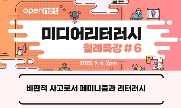 [미디어스=송창한 기자] 사단법인 오픈넷이 페미니즘과 미디어 리터러시를 주제로 온라인 특강을 개최한다.