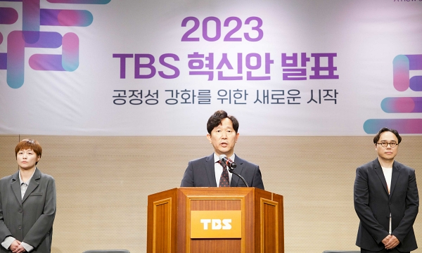 정태익 TBS 대표는 12일 서울 마포구 상암동 TBS 본사에서 "시민 여러분의 따끔한 비판을 귀담아 듣지 못한 점 진심으로 사과드린다"면서 '공정성 강화를 위한 TBS 혁신안'을 발표했다. TBS는 이날 보도자료를 통해 "<김어준의 뉴스공장>이 빚은 편향성 논란에 대한 반성과 개혁 의지를 담은 혁신안을 발표했다"고 부연했다.