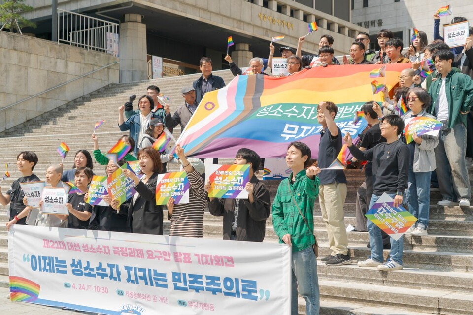 전국 49개 인권단체로 구성된 성소수자차별반대 무지개행동(이하 무지개행동)은 24일 서울 세종문화회관 앞에서 <제21대 대선 성소수자 국정과제 요구안 발표> 기자회견을 열었다.