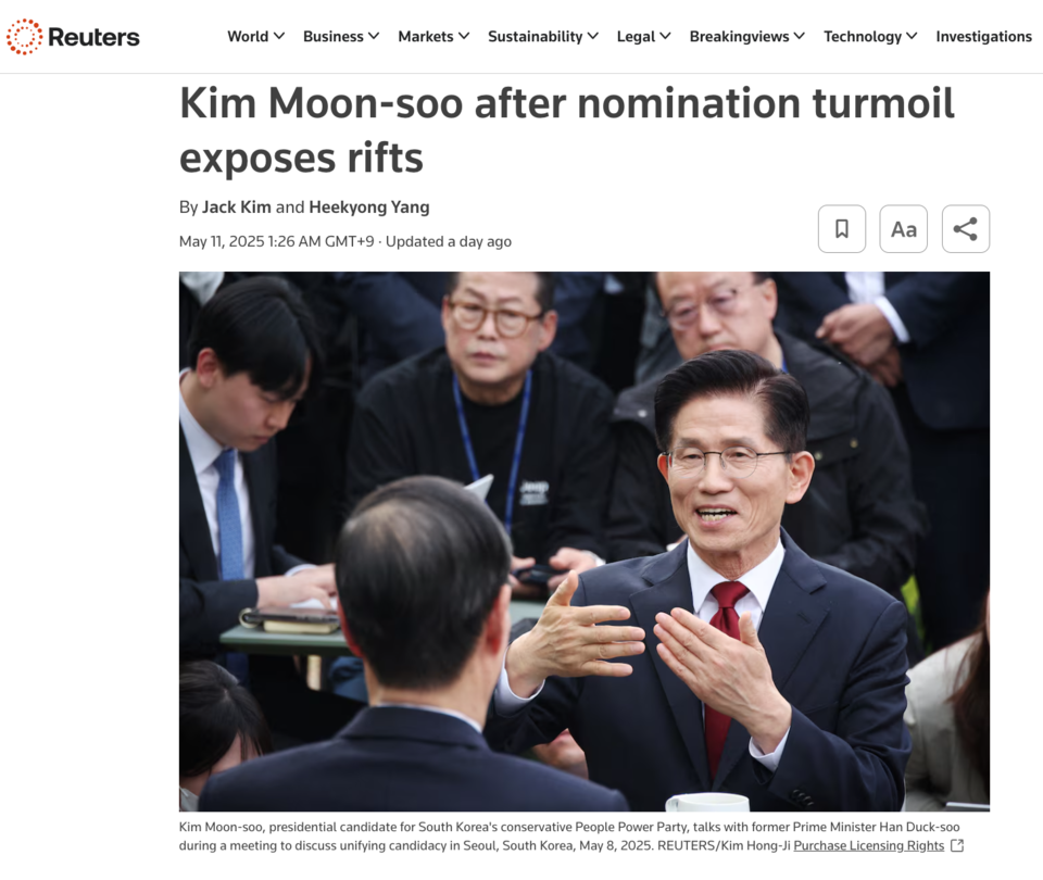 또한 로이터통신은 “국민의힘은 두 후보가 단일화에 실패하자 다른 대안이 없었다며 자신들의 움직임을 옹호했다”며 “불가피한 조치였다” “법적으로 아무런 문제가 없을 것이라고 판단한다”는 권영세 비상대책위원장의 발언을 전했다.