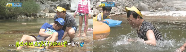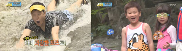 ‘아빠! 어디가?’의 12번째 여정은 계곡에서의 신나는 물놀이였습니다. 이날 특히 인상적인 것은 아이들 못지않게 설레고 즐거워한 아빠들의 모습이지요.